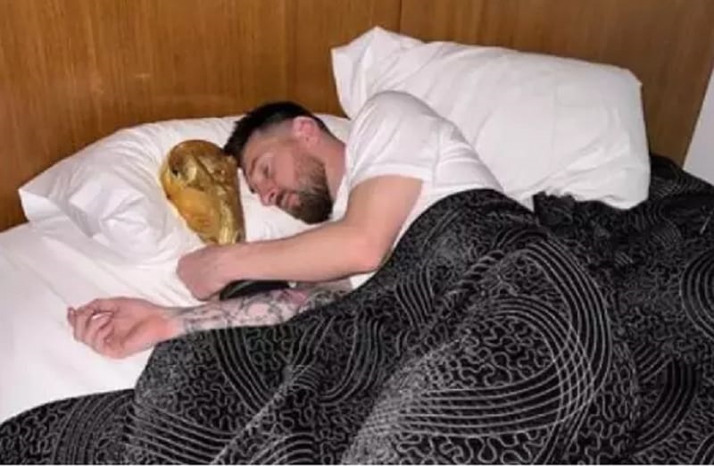 Nesta terça-feira (20), ele publicou algumas fotos em que aparece dormindo ao lado do troféu do Mundial. Na legenda, o craque escreveu apenas um “bom dia” e recebeu uma resposta apaixonada da mulher, Antonela. O atacante uruguaio Luis Suárez também comentou na publicação do amigo e perguntou em tom de brincadeira se ele havia “dormido mal”.