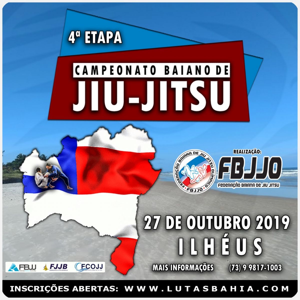 Ilhéus sediará, no dia 27 de outubro, a 4ª etapa do Campeonato Baiano de Jiu-Jitsu pela Federação Baiana de Jiu-Jitsu (FBJJO). A competição começará às 10 horas, no Ginásio de Esportes Herval Soledade, no bairro Cidade Nova. A entrada será gratuita.