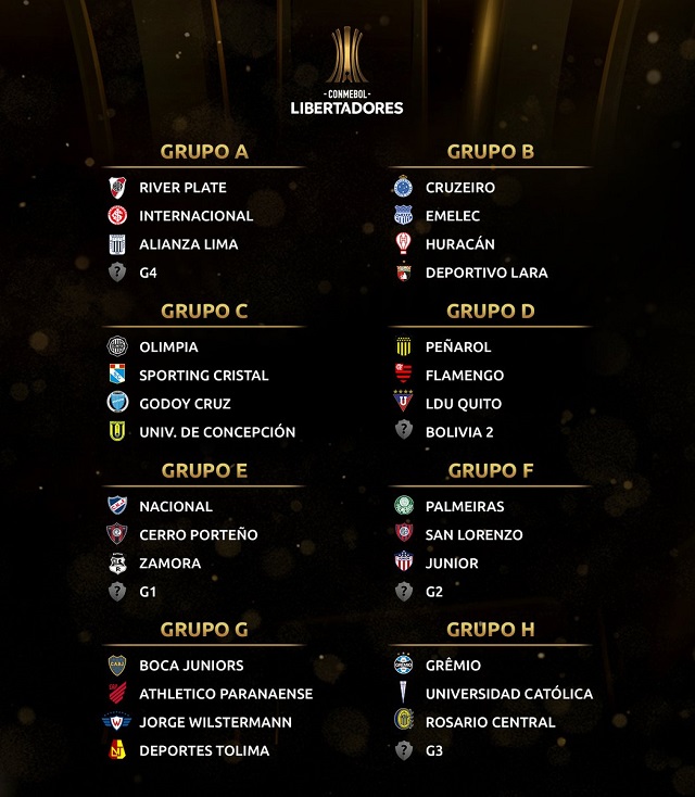 O Grupo A pode ser o mais equilibrado da competição. River Plate, atual campeão, e Inter estão na chave, e o São Paulo pode entrar nela se passar pelas primeiras fases. Já o Atlético-MG, se passar, vai para o Grupo E, ao lado de Nacional (URU), Cerro Porteño (PAR) e Zamora (VEN).