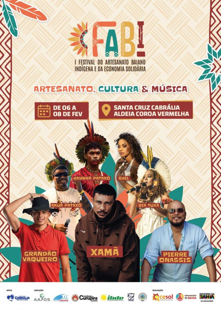 Entre as atrações confirmadas estão Xamã, Pierre Onassis, Grandão Vaqueiro, além de artistas locais e apresentações tradicionais indígenas, fortalecendo o diálogo entre tradição, identidade cultural e geração de renda. O festival acontece em um território simbólico para os povos indígenas do Extremo Sul da Bahia e reafirma o artesanato como expressão cultural, econômica e política.