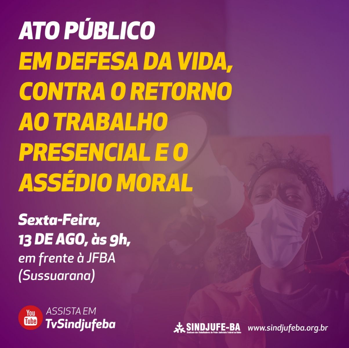 O objetivo desse Evento Nacional é denunciar o assédio moral, essa grave prática que torna o ambiente de trabalho inseguro, além de gerar adoecimento. No caso da Subseção de Eunápolis, alguns trabalhadores estão sendo pressionados, inclusive com processos administrativos por parte da Administração, para trabalharem presencialmente na pandemia, não obedecendo os critérios para os grupos de risco e não levando em consideração o alto grau de produtividade da Justiça Federal da Bahia com o trabalho remoto.