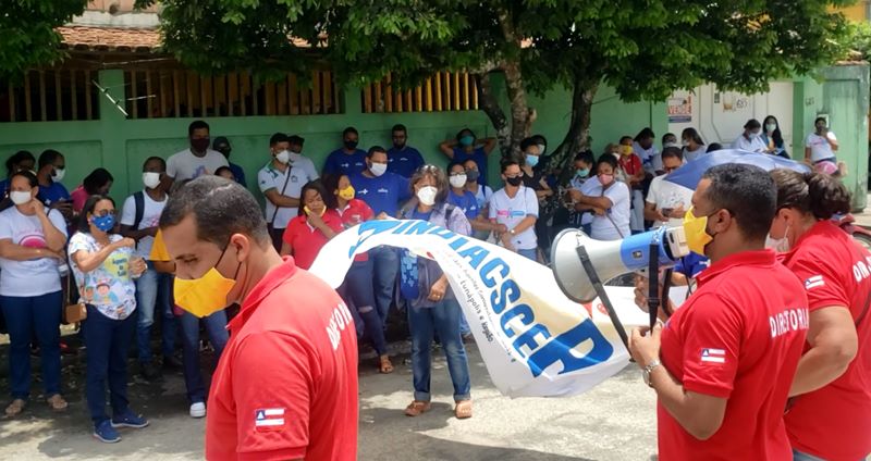Eunápolis – Na manhã desta quinta-feira (11/11), os Agentes de Combate a Endemias, realizaram uma manifestação pacifica em frente ao gabinete da prefeita de Eunápolis, Cordélia Torres.