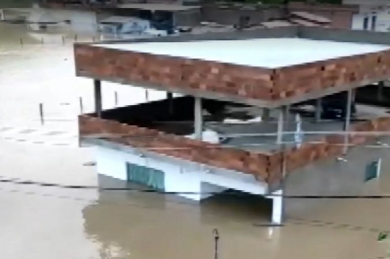 Casas da cidade de Jucuruçu ficaram submersas após enchente provocada pela chuva. Em Teixeira de Freitas, tio e sobrinhos de 4 e 9 anos morreram soterrados e ao menos seis casas desabaram após um barranco deslizar.