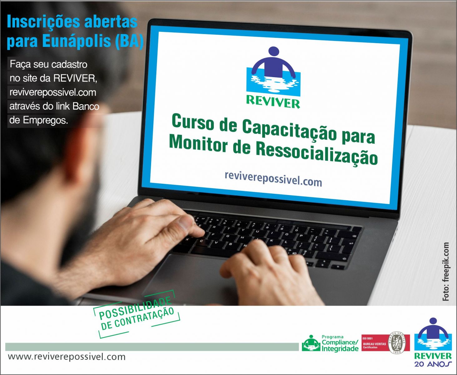 Para se candidatar ao curso de Monitor de Ressocialização é necessário ter idade mínima de 21 anos e ensino médio completo - basta fazer o cadastro no site www.reviverepossivel.com no link: “Banco de empregos” ( Link direto: http://empregos.reviverepossivel.com/login ).
