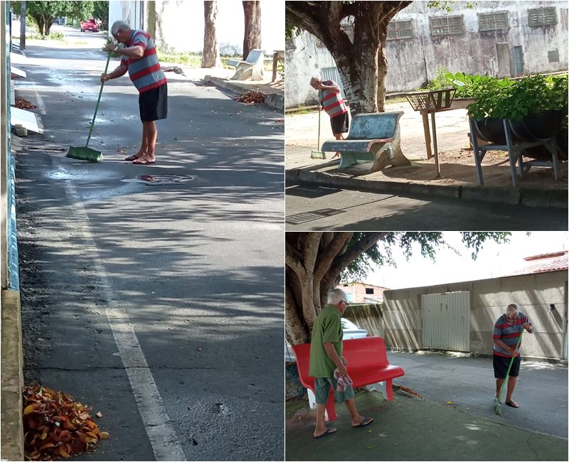 Outro cidadão exemplar é o Sr. Janino de Souza, que cuida dos bancos da praça como se fossem as cadeiras da casa dele. E tudo é feito por conta própria por esses homens, desde a compra dos sacos de lixo até a tinta que pinta os bancos da praça.