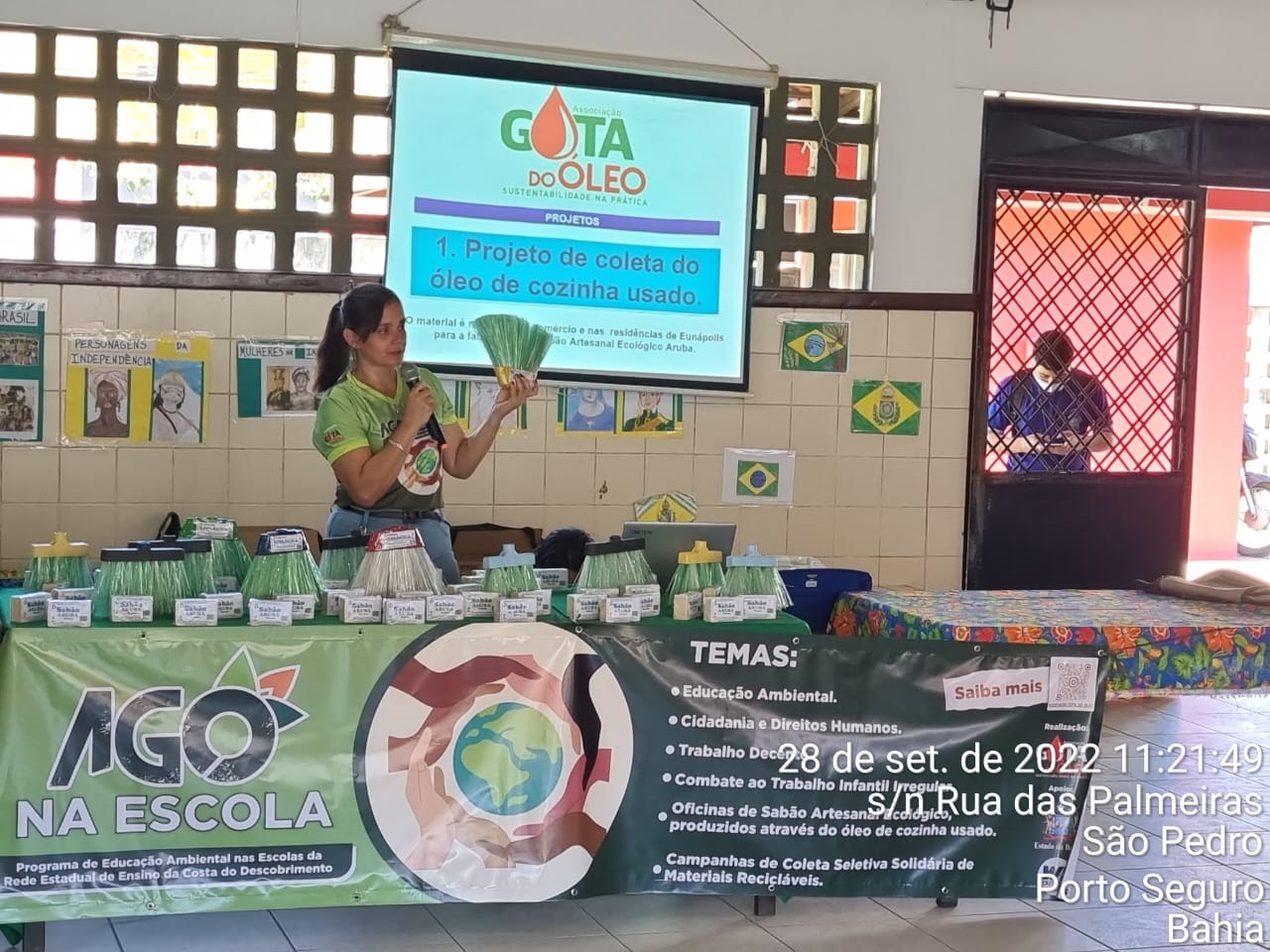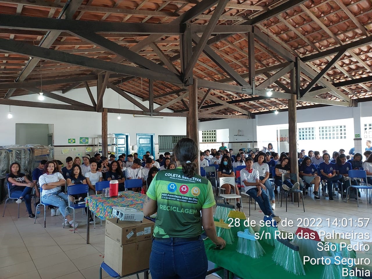 Nesta quarta-feira, 28 de setembro de 2022, mais um Colégio Estadual recebeu a equipe da Associação Gota do óleo - AGO para a realização do Programa de Educação Ambiental “AGO NA ESCOLA”. Desta vez, o Colégio foi o Estadual Arraial D’ Ajuda, distrito de Porto Seguro, Bahia, onde pela manhã 155 alunos e a tarde 113 alunos, totalizando 268, participaram de palestra com temas atuais e relevantes para a juventude, tais como: Educação Ambiental; Cidadania e Direitos Humanos; Trabalho decente; Combate ao trabalho infantil irregular e, Campanhas de coleta seletiva solidária de materiais recicláveis.