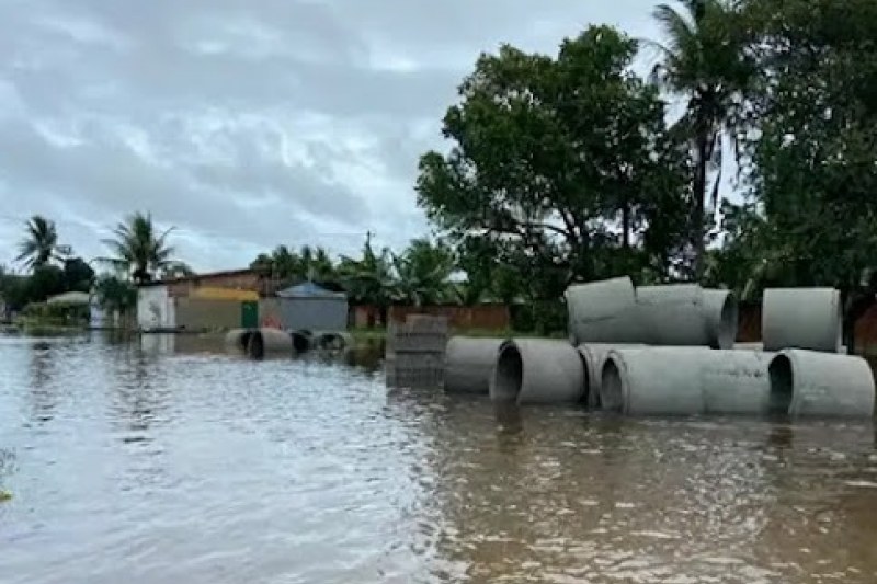 Pontes que ligavam a sede ao distrito Comuruxatiba, na BA-001, ficaram bloqueadas, segundo as autoridades. Ruas alagadas e móveis, roupas e alimentos perdidos também foram registrados.