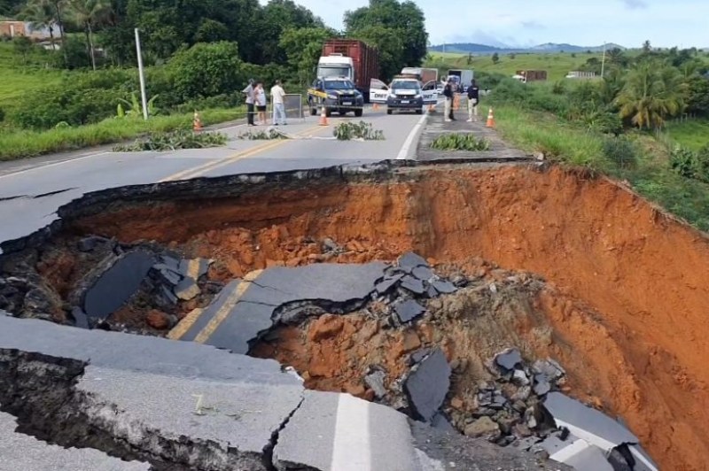 A volta das intensas chuvas fez paralisar a obra de recuperação na cratera que se abriu na BR-101, entre Itagimirim e Itapebi, extremo sul baiano. O incidente aconteceu na madrugada de quinta-feira (1°) e a obra foi iniciada pela tarde. A previsão é que a rodovia seja liberada apenas no fim da tarde de sábado (3).