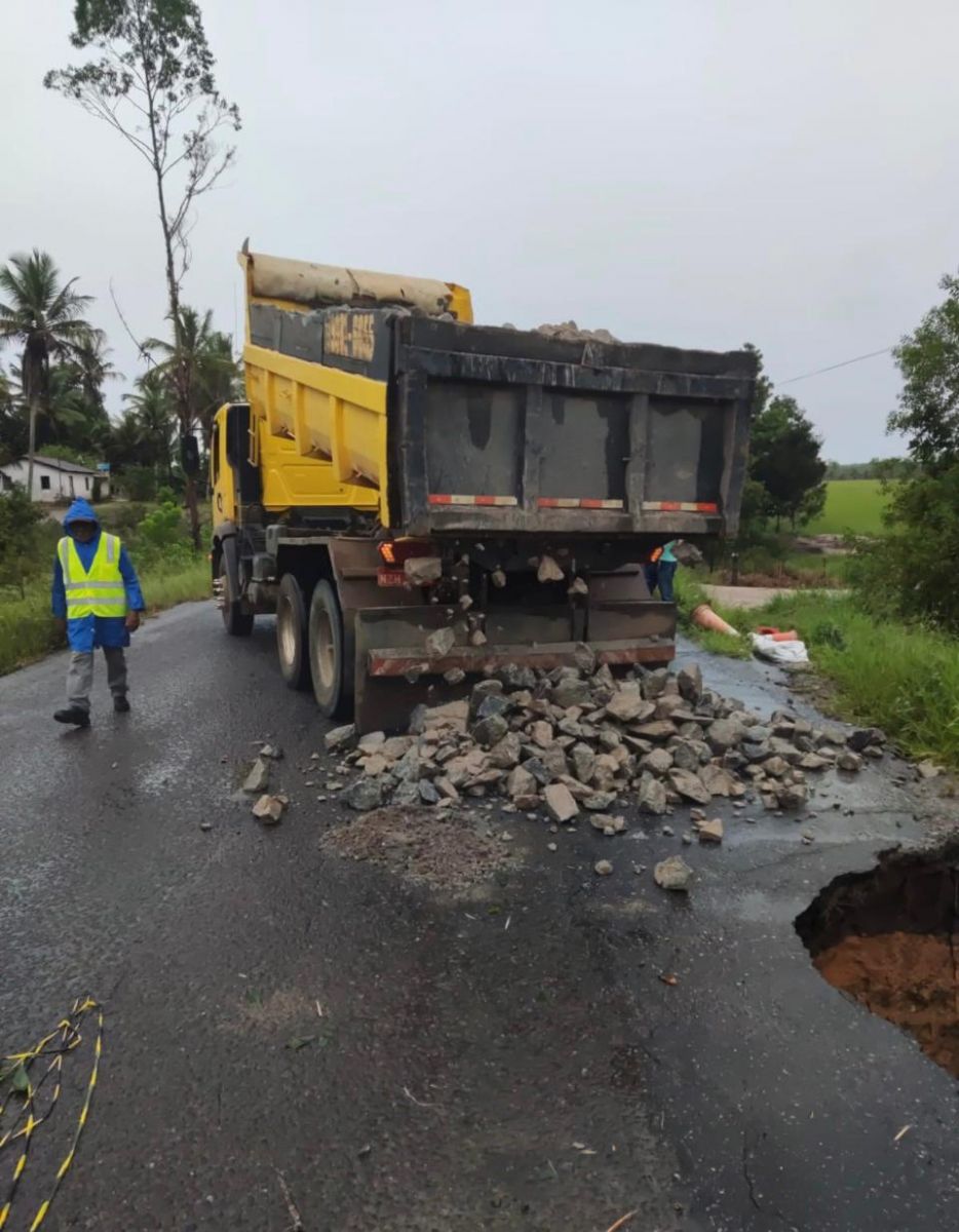 Um dos encontros da ponte no km 25 da BA-670, entre Potiraguá e Itororó, cedeu por conta das chuvas na noite da última sexta-feira (23/12). Uma inspeção no local foi realizada pela equipe técnica da Seinfra neste sábado (24/12). Na visita foi detectado que houve o surgimento de um buraco, que causou a interrupção parcial da via. O local já foi sinalizado pela Polícia Rodoviária Estadual (PRE). O tráfego está em meia pista.