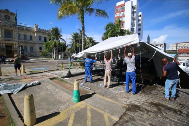 Segundo informações da SSP-BA, seis toldos, cadeiras, banheiros químicos e isopores, que davam suporte aos radicais de extrema direita, foram removidos.