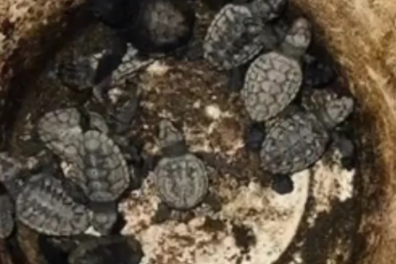 As tartarugas foram recolhidas e colocadas no mar.