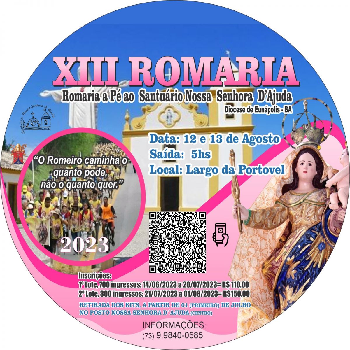 Inscrições podem ser realizadas pelo link: https://www.sympla.com.br/evento/acesso-xiii-romaria-ao-santuario-nossa-senhora/2033338.