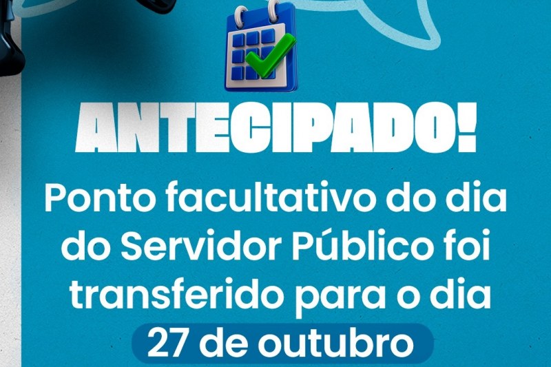 A Prefeitura de Eunápolis informa que o ponto facultativo referente ao Dia do Servidor Público, tradicionalmente celebrado no dia 28 de outubro, será antecipado para a segunda-feira (27), conforme estabelece o Decreto Municipal nº 12.842/2025. A medida abrange os servidores da administração pública municipal direta e indireta do Poder Executivo.