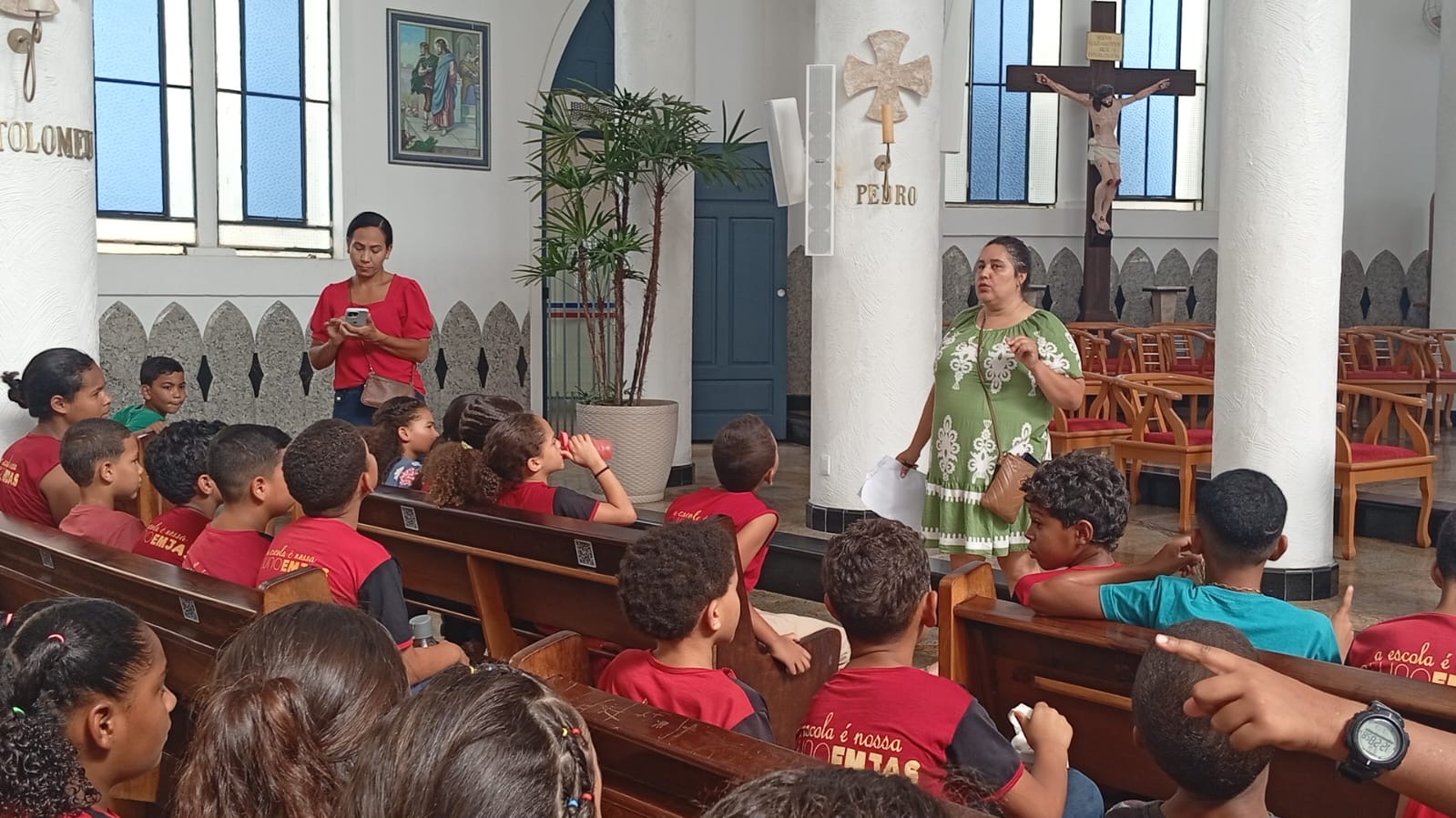 Durante a visita, alguns alunos foram sorteados para realizar o plantio de uma muda de árvore, enquanto outros participaram da rega, tornando o momento ainda mais significativo.