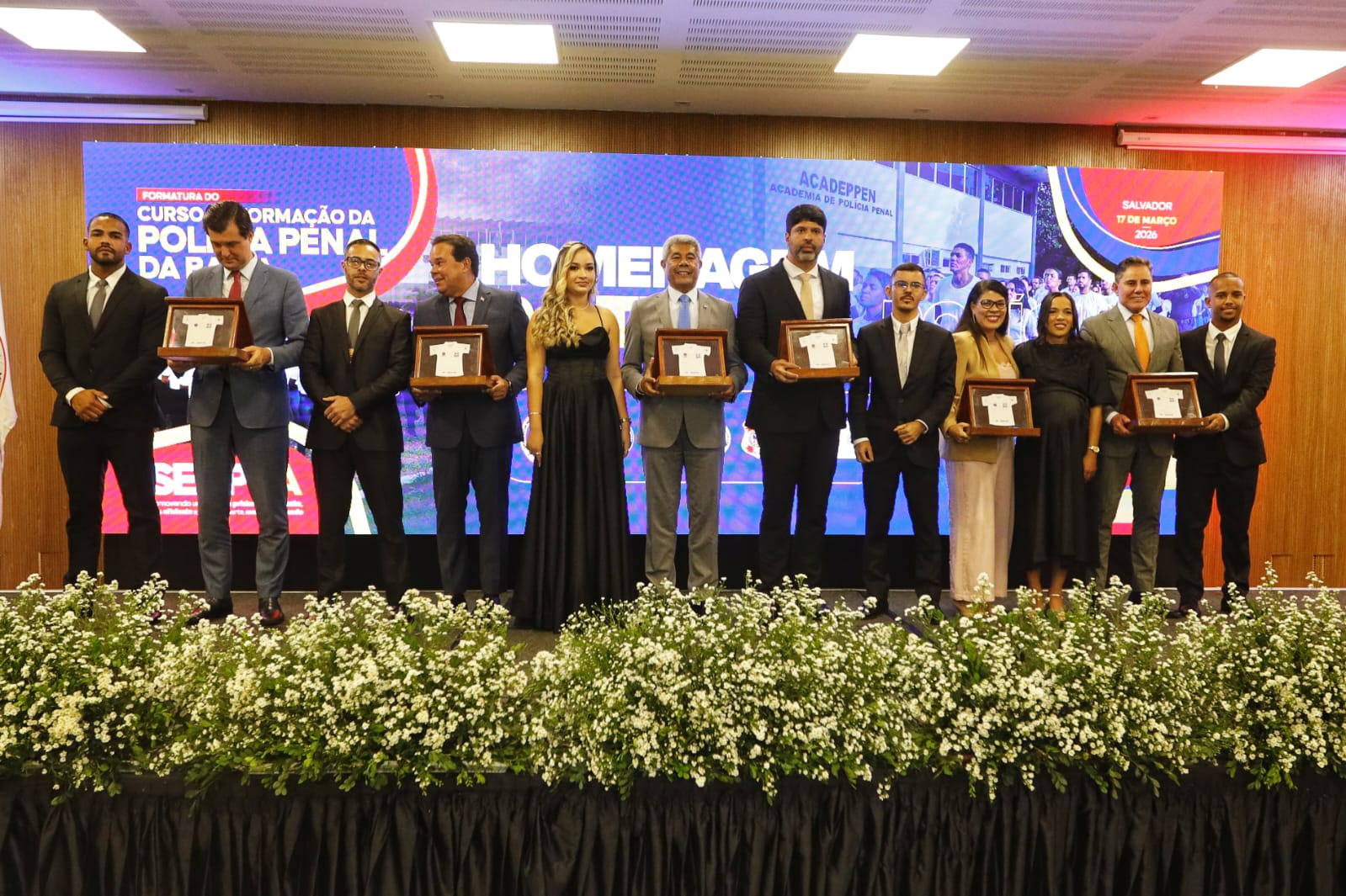 A solenidade contou ainda com a presença do secretário da Segurança Pública, Marcelo Werner, do delegado-geral da Polícia Civil, André Viana, e do comandante-geral da Polícia Militar da Bahia, Antônio Carlos Silva Magalhães. A expectativa é que a atuação dos novos policiais penais contribua para o fortalecimento da segurança nas unidades prisionais e para o aprimoramento das ações de ressocialização em todo o estado.