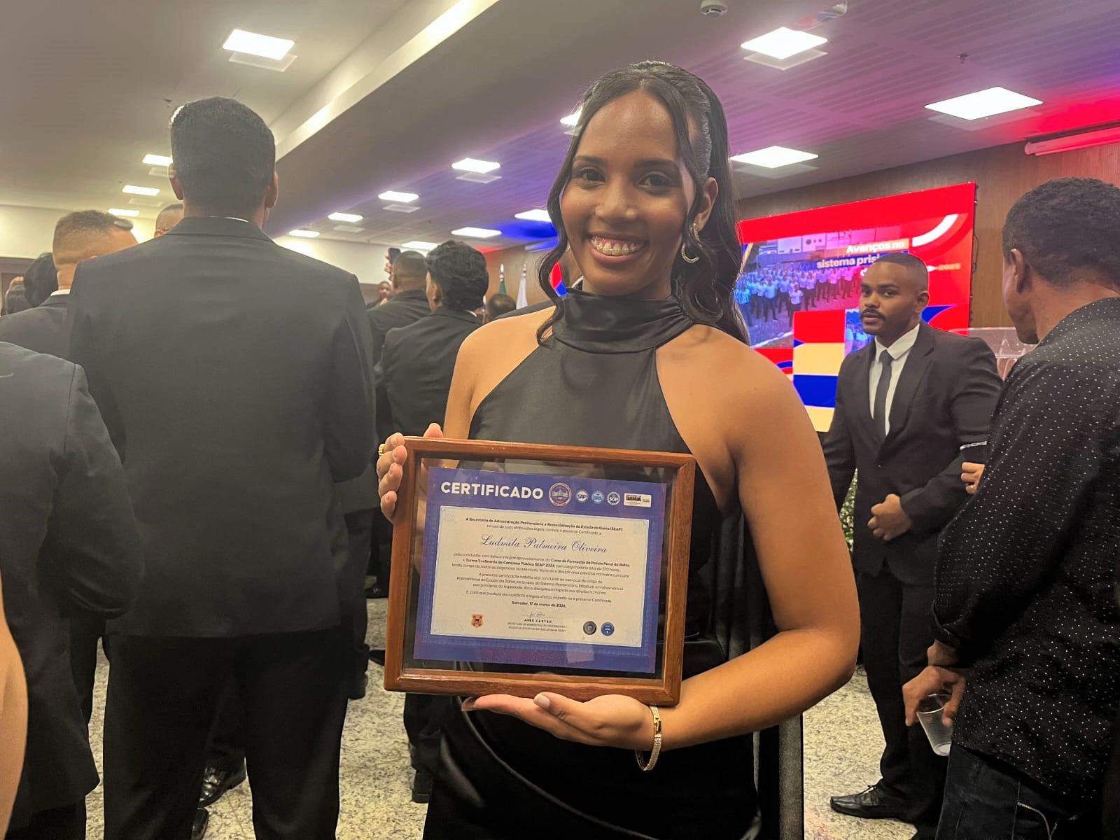 O sorriso no rosto e a sensação de dever cumprido resumem o sentimento de quem realiza um sonho. Entre os 250 novos policiais penais formados na Bahia, Ludmila Palmeira se destacou ao conquistar a maior pontuação do curso. “Esse concurso foi muito difícil, com muitas fases. Estou muito honrada, principalmente por receber o prêmio das mãos do governador Jerônimo Rodrigues. Meu sentimento é de pertencimento”, afirmou.