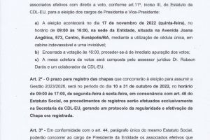 CDL divulga Edital de convocação - Eleição Quadriênio 2023-2026