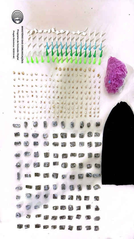 Por volta das 10h, em Arraial D’Ajuda, a polícia abordou dois homens em atitude suspeita que estavam transportando uma sacola. Ao perceberem a presença policial, os suspeitos fugiram, abandonando o material. Ao inspecionar a sacola, foram encontradas 25 porções de maconha, além de outros itens utilizados no tráfico de drogas. O material foi apreendido e levado à Delegacia de Polícia.