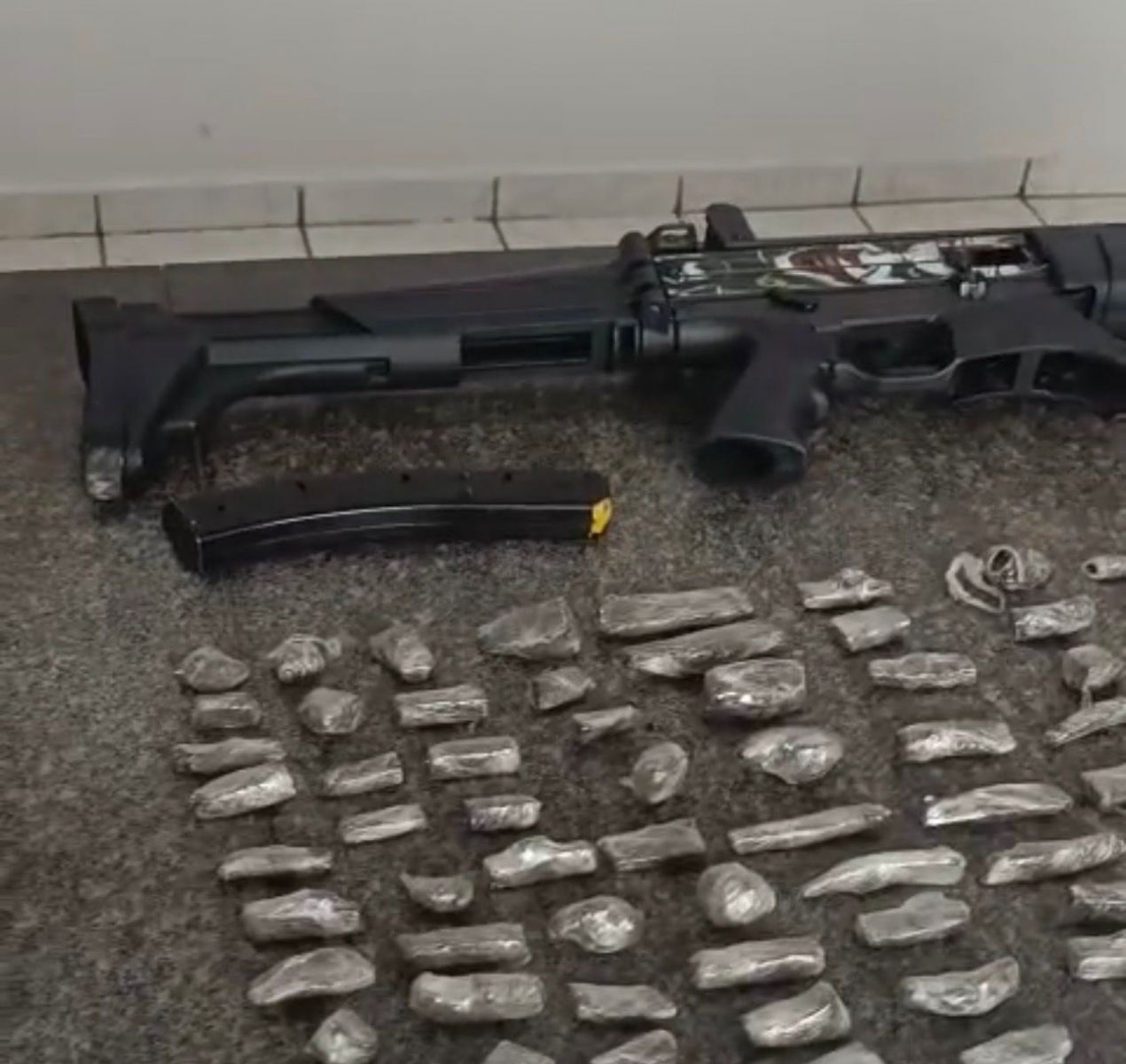 Durante a ação, os policiais apreenderam uma carabina calibre 9mm, um revólver calibre .32, aproximadamente 520 gramas de maconha, 43 gramas de crack, 27 gramas de cocaína, dois binóculos, além de munições e estojos de diversos calibres.