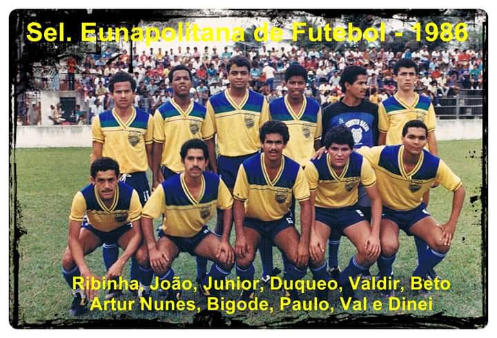Aqui a seleção Eunapolitana de 1986 treinada por Mario Alfaiate. Na foto temos: Ribinha, João, Junior, Duqueo, Valdir e Roberto.