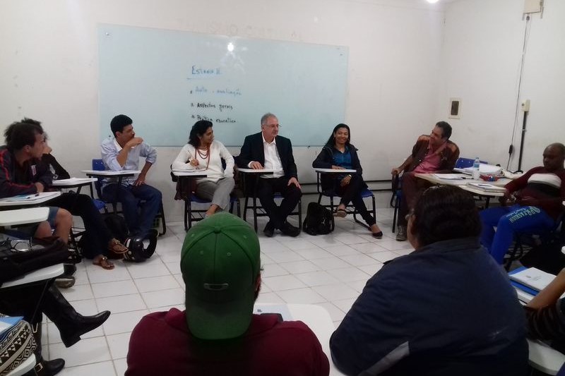 Em visita de caráter institucional ao campus XVIII da Universidade do Estado da Bahia, em Eunápolis, o reitor José Bites de Carvalho se reuniu com professores e estudantes na noite desta sexta-feira (07/07). Ele estava acompanhado da diretora do Departamento, Maria Jacilda Laurindo, a pró-reitora de Extensão, Celeste Castro, e do diretor de Colegiado de História, Márcio Santana. Na ocasião ele ouviu algumas demandas de estudantes do Curso de Turismo, que reivindicam a presença de professores para concluir a graduação.