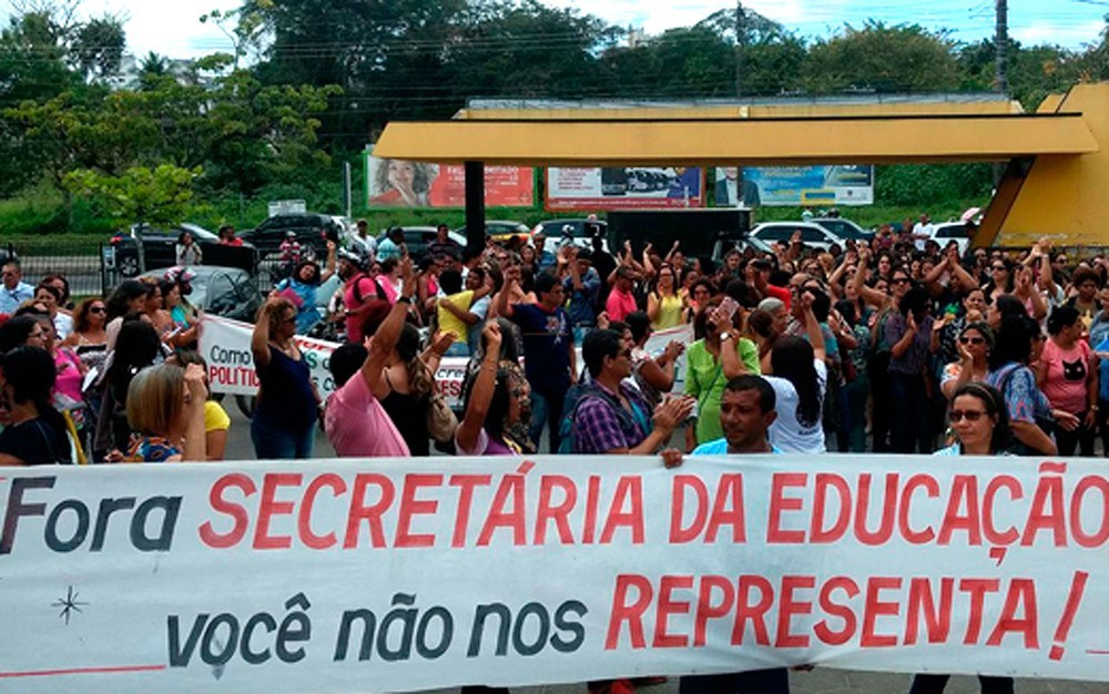 Professores da rede municipal de Itabuna, sul da Bahia, pediram a demissão da secretária de Educação, Anorina Lima, e do corpo técnico da secretaria. Eles fizeram protesto na prefeitura, nesta segunda-feira (2), contra o corte de 20% do chamado adicional de "Atividade de Classe (AC)". Cerca de 500 professores foram atingidos pela medida.