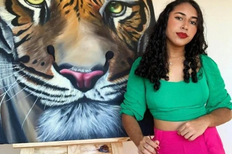 A estudante levará para o salão em Paris sua pintura a óleo com a temática que mais se identifica: a flora e fauna brasileiras. “Gosto de pintar animais e pessoas e de juntar os dois, pois o ser humano e a natureza estão conectados em cada mínimo detalhe. Por isso, sou apaixonada em retratar pessoas e animais. Sou autodidata e em toda a minha trajetória errar e refazer têm sido meus aliados no aprendizado. Sempre me arriscando em telas enormes fez com que eu atingisse o nível de realismo que pinto hoje”, revela.
