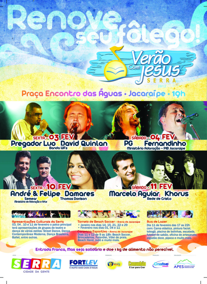 Local: Praça Encontro das Águas, Serra (ES), sempre a partir das 19h.