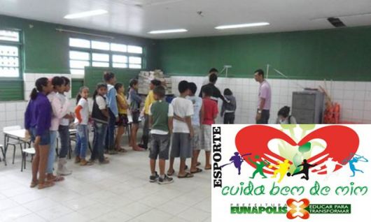 O mutirão do Esporte Educacional teve como objetivo além da realização da anamnese de saúde aferir a demanda da procura do alunado pela prática do esporte, democratizar as opções de lazer como forma de combate aos altos índices de violência para a juventude. Foram realizadas aproximadamente 2000 (duas) mil avaliações e pré-matrícula nas modalidades esportivas Atletismo, Basquetebol, Futsal, Handebol, GR, Judô, e Voleibol. Os núcleos funcionarão nas novas quadras que foram construídas anexos das escolas municipais do Nilza Barboza e Anésia Guimarães no Bairro Pequi, Almerindo Alves dos Santos (B. Estela Reis), D. José Edson (B. Itapuan), Gabriel José Pereira e Ginásio A.C.M (B. Centauro), José de Araújo Santana(B. Rosa Neto), Nicolau coelho(B. Juca Rosa), Professor José Edelzuito Soares (B. Dinah Borges), Guiseppe Iacoviello (B. Thiago de Melo), Padre José de Anchieta (B. Colônia) É importante salientar que o projeto é direcionado para toda Juventude Eunapolitana, o aluno que tiver interesse em participar do projeto basta estar matriculado regularmente em uma escola e procurar um dos núcleos de iniciação desportiva mais próxima de sua residência e realizar sua matricula.