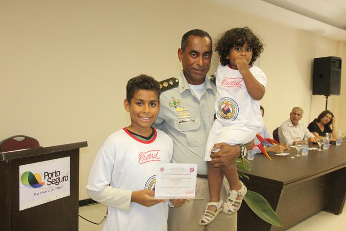 Do Programa Educacional de Resistência às Drogas e à Violência (PROERD). Foram contemplados estudantes do 5° ano da rede de escolas municipais de Porto Seguro, os quais receberam os certificados do curso e o prêmio de um microcomputador para cada vencedor das quatro turmas em um concurso de redação, na qual os alunos PROERD resumiram o que aprenderam nos três meses de curso, assumindo o compromisso de viver de bem com a vida e longe das drogas