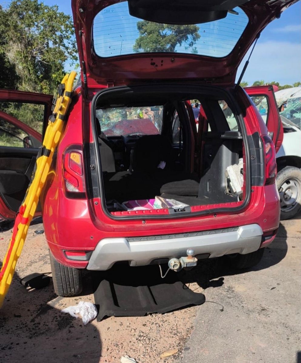 A colisão ocorreu em uma curva antes do trevo do Mundai, nas proximidades da Vila Parracho, e envolveu dois automóveis. Uma motocicleta que estava parada no acostamento também foi atingida após o impacto.