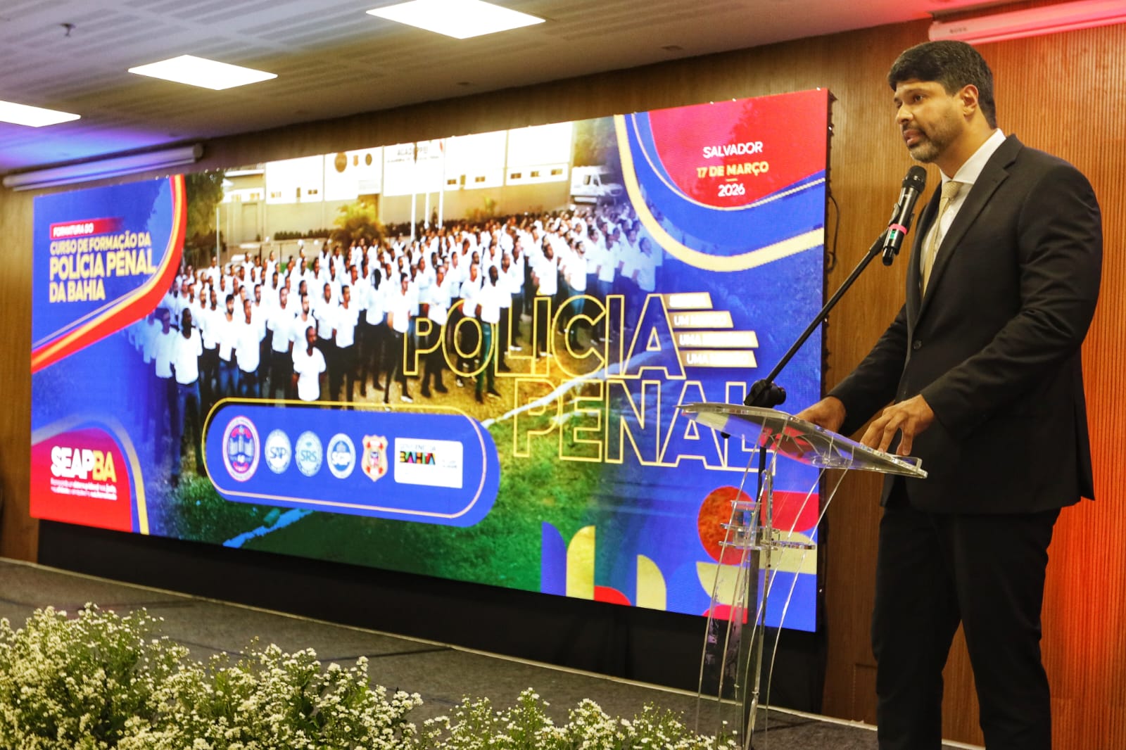 A solenidade contou ainda com a presença do secretário da Segurança Pública, Marcelo Werner, do delegado-geral da Polícia Civil, André Viana, e do comandante-geral da Polícia Militar da Bahia, Antônio Carlos Silva Magalhães. A expectativa é que a atuação dos novos policiais penais contribua para o fortalecimento da segurança nas unidades prisionais e para o aprimoramento das ações de ressocialização em todo o estado.