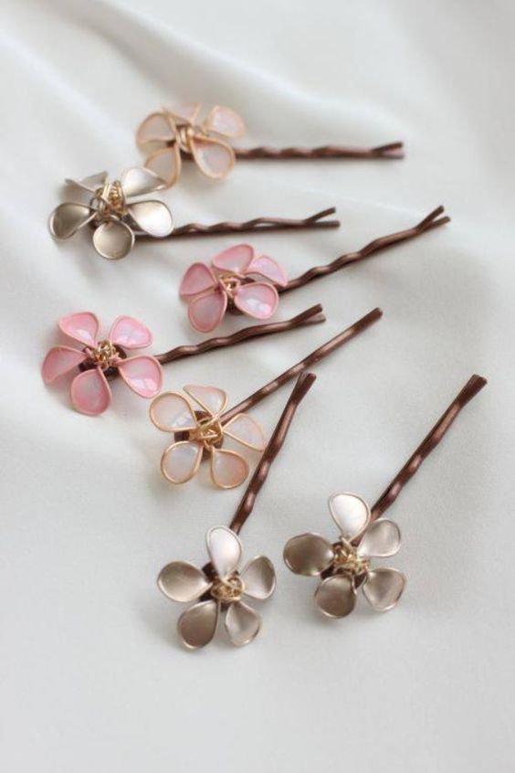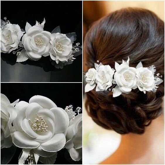 Podem ser de tecido, como uma faixa bem simples, com flores e folhas ou mais luxuosas com pedrarias.