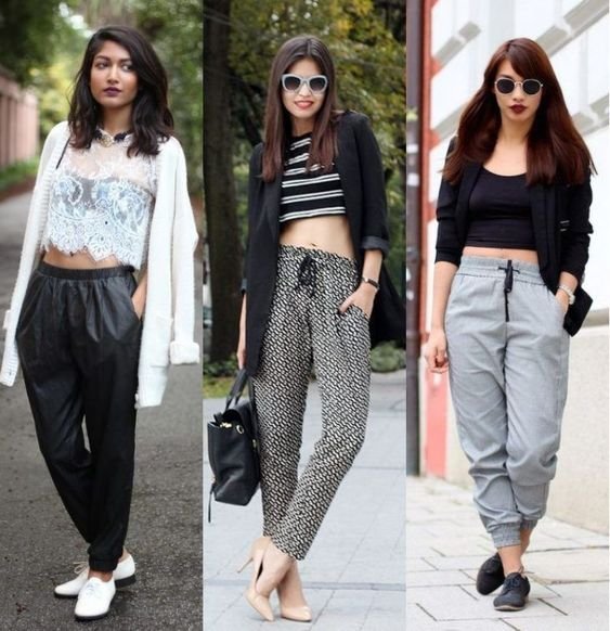 Produções noturnas e festivas também permitem o uso de uma peça esportiva. Quem quiser colocar a barriguinha para jogo pode usá-la com top cropped e nos pés scarpin de bico fino e salto alto. Mas se não se sentir confortável com esta parte do corpo à mostra pode apostar em um body com decote nas costas.