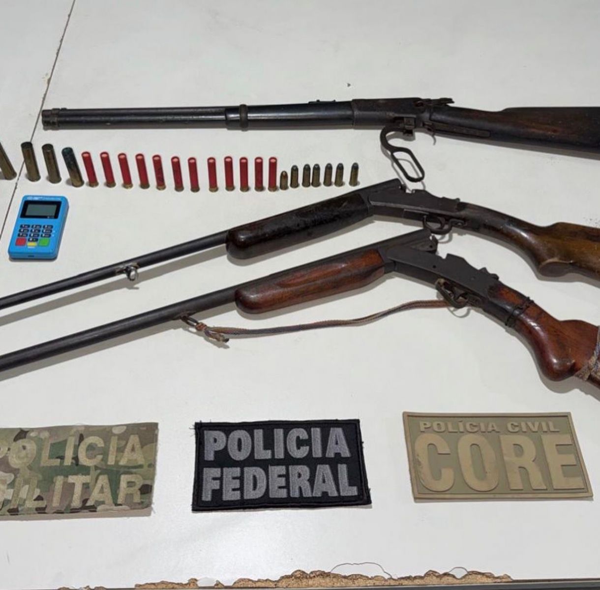 No decorrer da operação, os agentes também apreenderam armas e munições de uso restrito, que foram encaminhadas à Delegacia da Polícia Federal em Porto Seguro.