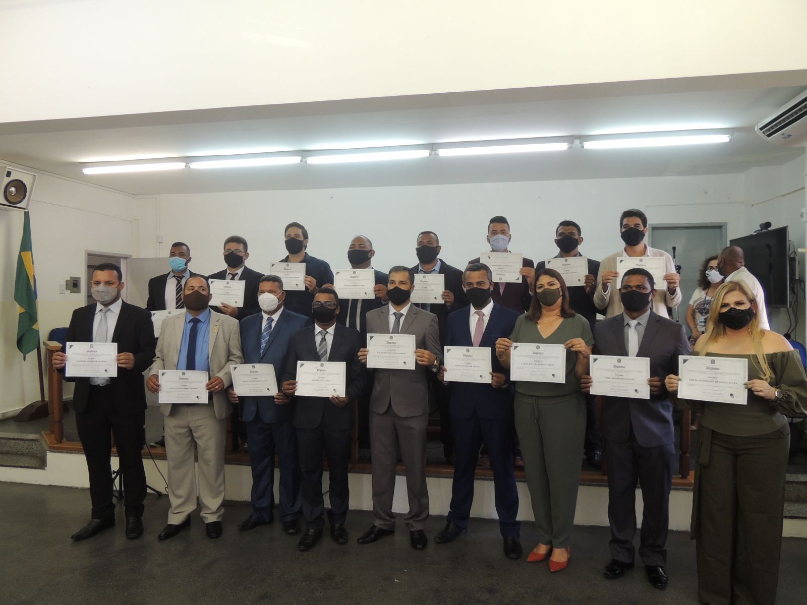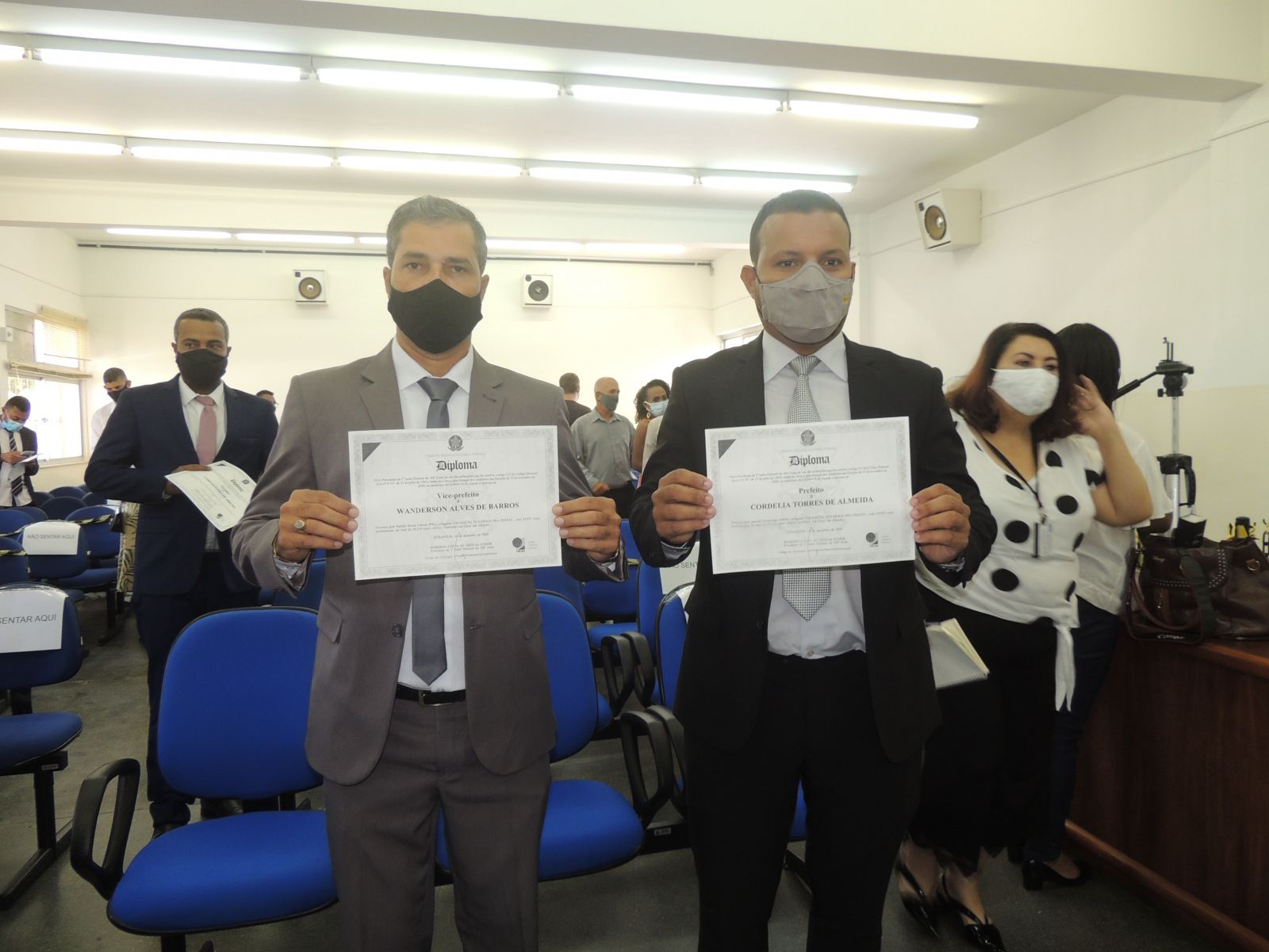 17 VEREADORES ELEITOS TAMBÉM FORAM DIPLOMADOS - Além da prefeita e do vice-prefeito, foram diplomados os 17 vereadores eleitos: Carmém Lúcia Gerino Maciel (PSD); Gildair da Silva Almeida (PSD); Jorge Maécio Pires Almeida (PP); Adriano Cardoso Caires (SOLIDARIEDADE); Valterlan Cardoso Silva (PMB); Tiago Souza Mota (REPUBLICANOS); Pedro Henrique Queiroz (SOLIDARIEDADE); Jairo Brasil dos Santos (PP); Arilma Rodrigues de Souza Alves (DEM); Ueliton Moraes de Oliveira (PMB); Franscley Gabriel Souza Oliveira (PTC); Arthur Mendonça da Silva (DEM); José Carlos Barbosa Baião (DEM); Marcos Oliveira Costa (PDT); Renato Bromochenkel (AVANTE); Adelson Costa Pereira (PSC); e Fábio de Arruda (PSC).
