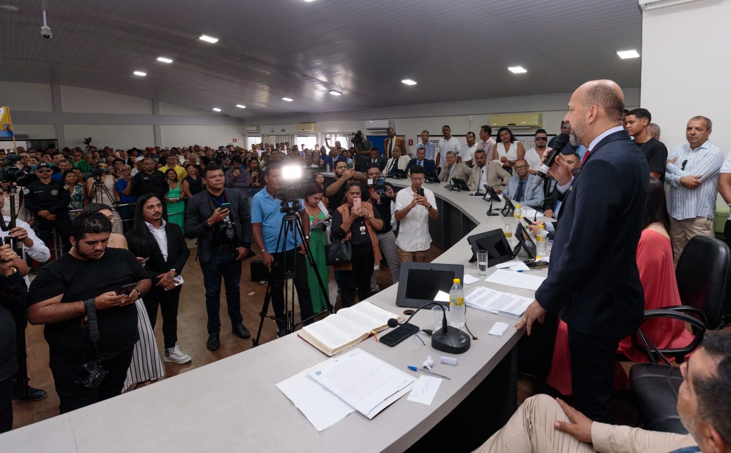 O primeiro ato da posse foi o juramento de Robério. Em seguida, ele assinou o termo de posse, e o vice-prefeito, Pastor Bené, repetiu os dois passos. O novo prefeito afirmou que anunciará o secretariado ainda nesta semana, em uma coletiva de imprensa que deverá ocorrer em seu gabinete.