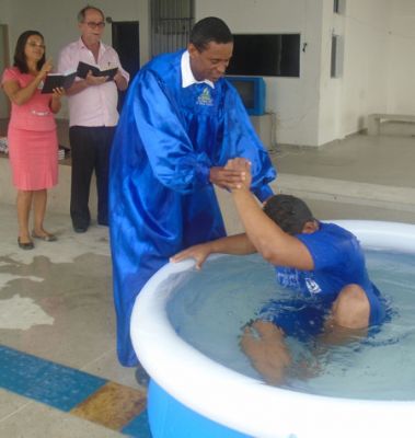 Aos privados de liberdade é assegurada a assistência religiosa através de cultos e livros de instrução religiosa. Para atender os preceitos da LEP (art.24) o CPE organizou no último dia 08 um batismo para reeducandos que manifestaram interesse em praticar novos hábitos em suas vidas.