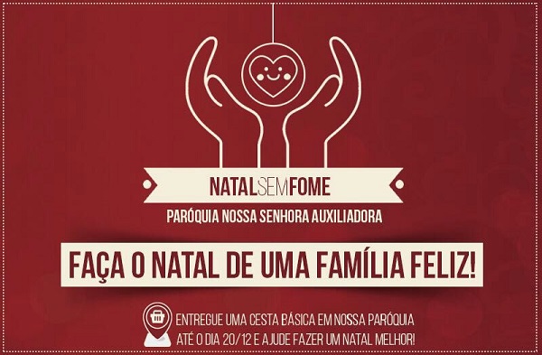 “Mais uma vez gostaria de contar com sua doação de uma cesta básica para que juntamente com nosso grupo de jovens possamos fazer uma família um pouco mais feliz na campanha Natal Sem Fome. Vamos nos unir como cristãos e ajudar os irmãos independentemente da sua religião, pois somos todos irmãos”, diz a paróquia em comunicado.