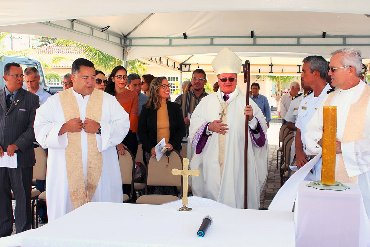 Após o ato religioso, a prefeita acompanhou a homilia em homenagem aos marinheiros, participou do canto ao Hino Nacional e do coquetel oferecido aos convidados. Também esteve presente no evento, o prefeito de Santa Cruz Cabrália, Agnelo Santos, autoridades civis e religiosas, além dos familiares dos marinheiros.