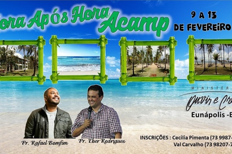 Está chegando o dia do Hora Após Hora ACAMP, que esse ano será no litoral paradisíaco de Porto Seguro. De 9 a 13 de fevereiro, durante o feriado de carnaval, os pastores Eber Rodrigues e Rafael Bonfim vão ministrar os cultos.