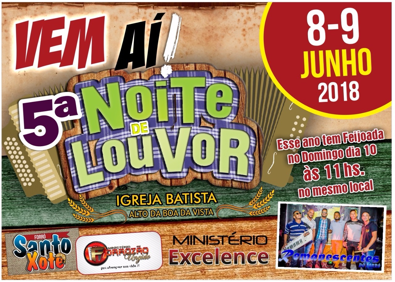 A Noite de Louvor é um evento aberto ao público e com entrada franca. A sua presença é uma semente que gera frutos para o Reino de Deus! Chegando à 5° Edição, a Noite de Louvor vem crescendo ano após ano, afinal, o nosso povo trabalha com muito amor e dedicação para receber carinhosamente a todos, independente de seus credos religiosos.