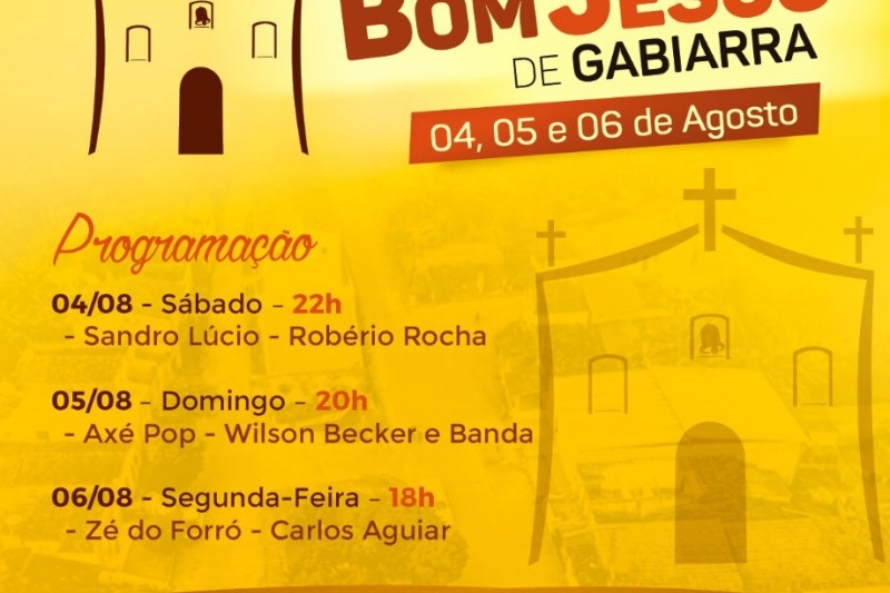 Com grande importância histórica para a cidade de Eunápolis, o Distrito de Gabiarra comemora na próxima segunda-feira (06/08) o dia de Bom Jesus, padroeiro da localidade. Unindo fé e tradição, e visando proporcionar aos moradores de Gabiarra um momento de cultura e integração, a Prefeitura de Eunápolis realizará nos dias 04, 05 e 06/08 a Festa de Bom Jesus de Gabiarra, com grandes atrações musicais para envolver toda a comunidade e festejar a importância deste distrito na história do município.