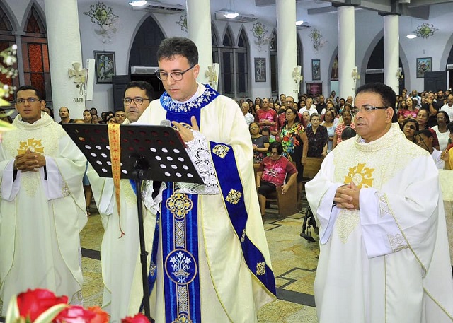 O novenário em honra à Padroeira Diocesana de Eunápolis, Nossa Senhora Auxiliadora, chegou à sexta noite nesta segunda-feira (20). Participou da celebração junto ao Padre Alessandro Colen o Frei Roberto Fernandes.