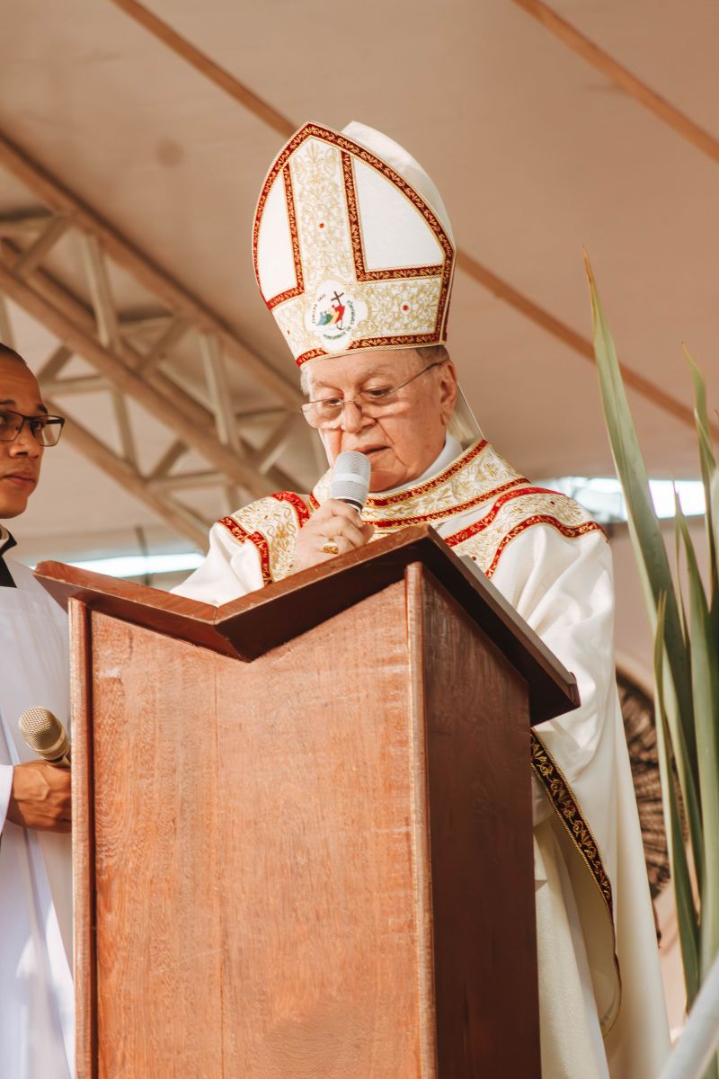 Durante a homilia, o bispo diocesano Dom José Édson Santana Oliveira destacou a importância histórica e espiritual da celebração. “Celebramos também hoje os 526 anos da primeira missa, rezada nesse local, que ficou conhecida como a primeira missa no Brasil. Realizada aqui neste belo lugar, Coroa Vermelha. Estar aqui, nesse lugar sagrado, marcado pela história, neste município de Santa Cruz Cabrália, em 26 de abril de 1500, nos remete ao início da fé cristã em nosso país. Naquele altar simples, erguido em terra recém-encontrada, iniciou-se a história de fé cristã no Brasil. A Eucaristia celebrada aqui há 526 anos foi mais do que um gesto religioso. Foi a semente do Evangelho plantada neste solo da Terra de Santa Cruz, hoje Brasil”, afirmou.