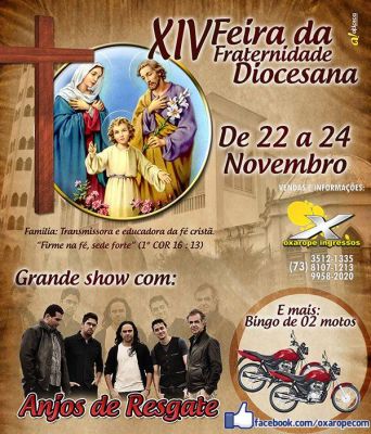 "De 22 a 24 deste mês, a Igreja Católica realiza a 14ª Feira da Fraternidade Diocesana, festa de congraçamento dos católicos. Nessa edição a Feira tem como tema, “Família: Transmissora e educadora da fé cristã”.