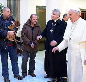 Um deles segurava seu cachorro ao ser apresentado a Francisco, durante conversa após a missa. O vaticano também informou que Francisco convidou seus criados para criar uma atmosfera “Familiar” e conversou com eles um por um durante sua homilia.