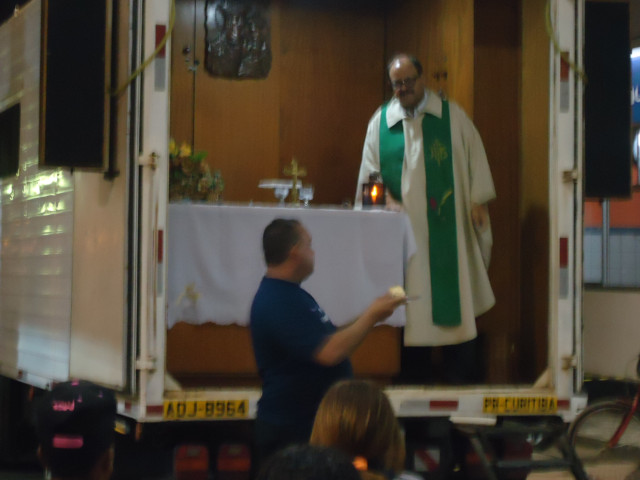 Foi Realizado nesta quarta-feira (10) às 20:h00, uma missa da Pastoral Rodoviária no Posto Cabral, para os caminhoneiros, trabalhadores e a comunidade vizinha. A Missa foi realizada pelo padre Miguel (Miguel Staron),