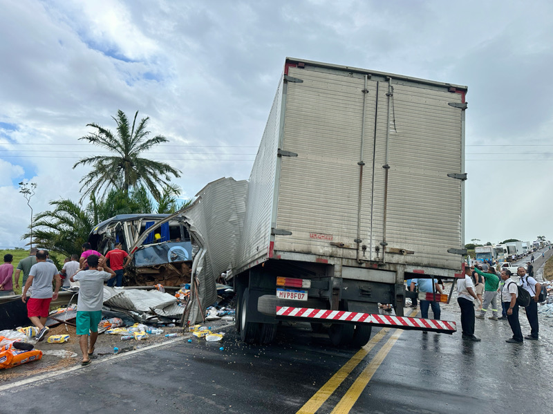 Um trágico acidente envolvendo um caminhão-baú e um ônibus ocorreu nesta quinta-feira (19), na BR-101, entre as cidades de Eunápolis e Itagimirim, na conhecida curva da Visgueira. A colisão resultou na morte de duas pessoas e deixou várias outras gravemente feridas.