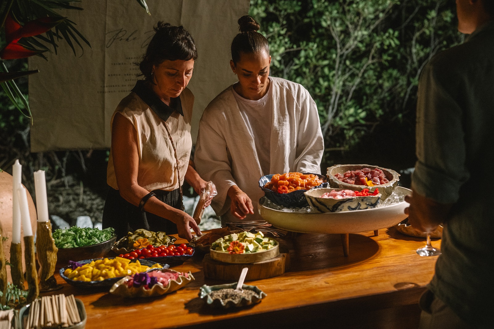 A união dessas trajetórias dá vida ao Lá Fora Bahia, que nasce com a missão de preservar a sofisticação conquistada em São Paulo e, ao mesmo tempo, valorizar os ingredientes, os produtores locais e a essência baiana. O primeiro casamento realizado em Trancoso já mostrou essa proposta: uma celebração que rompeu com os formatos tradicionais e trouxe ilhas gastronômicas temáticas — de comfort food a poke fresco e parrilla com hambúrgueres — em total harmonia com o espírito do lugar.